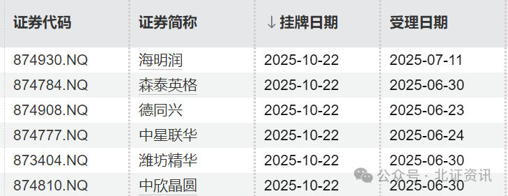 10月22日巨龙配资,新三板迎来中欣晶圆、海明润、森泰英格、德同兴、中星联华、潍坊精华等6家企业集体挂牌,涵盖高端制造、新材料、半导体等多个关键领域。